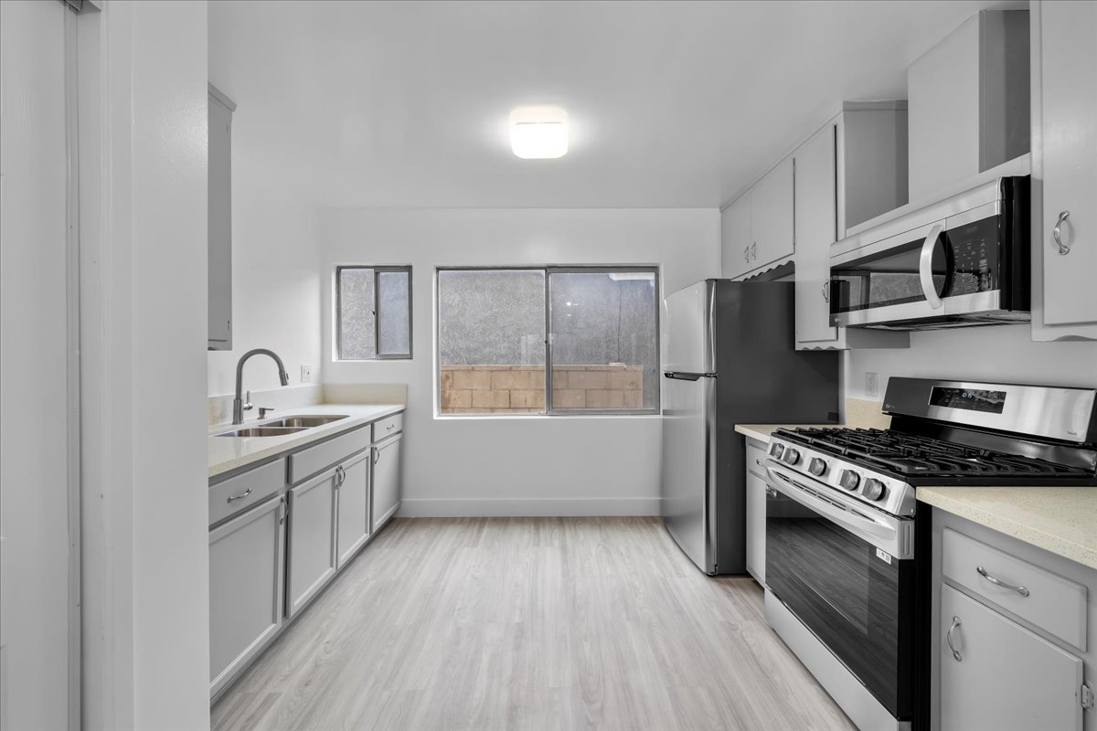 Renovated front 2BD/1BA first-floor back unit in desirable Vista Del Oro. Approximately 866 sq ft on a quiet street. Updated kitchen with new refrigerator, microwave and gas range. Side-by-side washer/dryer included. Large windows provide abundant natural light. Includes 1-car garage. Move-in ready!