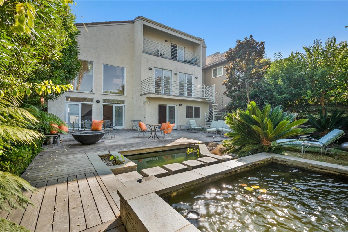 Stunning Modern Home with Exceptional Design! This breathtaking three-level modern home offers 4 bedrooms (including one currently serving as a library) and 3.5 baths, encompassing 3,438 sq ft on a generous 7,500 sq ft lot. The artist-designed stained glass double entry doors and windows by Gary Kanzanjian welcome you into a beautifully landscaped and gated front patio complete with a gazebo, built-in barbecue, and a soothing fountain. The entry level features a spacious, open floor plan with soaring ceilings and views of the city lights, a cozy living room with a fireplace, an elegant dining area, and French doors that lead to a lovely balcony. The gourmet kitchen is a chef's dream, showcasing all new quartz counters, a breakfast nook, a center island, custom French Sycamore Maple cabinets, and top-of-the-line stainless steel appliances, including a Sub-Zero refrigerator, Asko dishwasher, Gaggenau and Miele ovens, a Viking wine fridge, and exquisite maple hardwood flooring. The lower level boasts a large family room with a fireplace and slate flooring, seamlessly leading to a manicured yard with a firepit, koi pond and outdoor furniture. This level also includes two bedrooms—one utilized as a library and another as a guest room featuring built-in Murphy beds, drawers, and a desk area, along with a separate laundry room and mini kitchen. The upper level is dedicated to rest and relaxation, showcasing two additional bedrooms, including a luxurious Master Suite with a spacious walk-in closet and private balcony. The Master bath is adorned with skylights, slate tile, a soaking tub, and a separate shower, while the second bedroom offers its own full bathroom and large walk-in closet. With numerous amenities and located within the award-winning Manhattan Beach School District, this home is truly a must-see! Ring and ADT available. Pets OK. Please call for more information. (310) 490-0214
